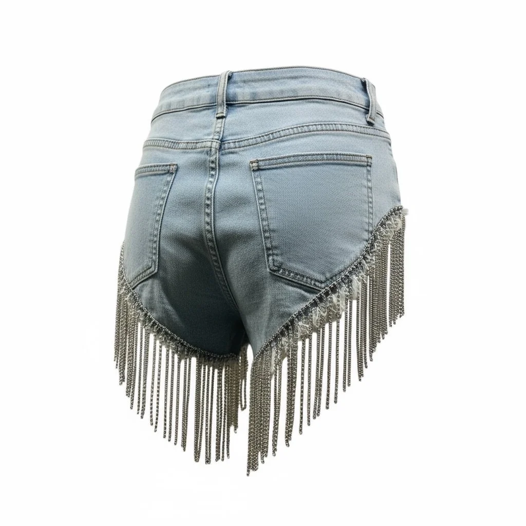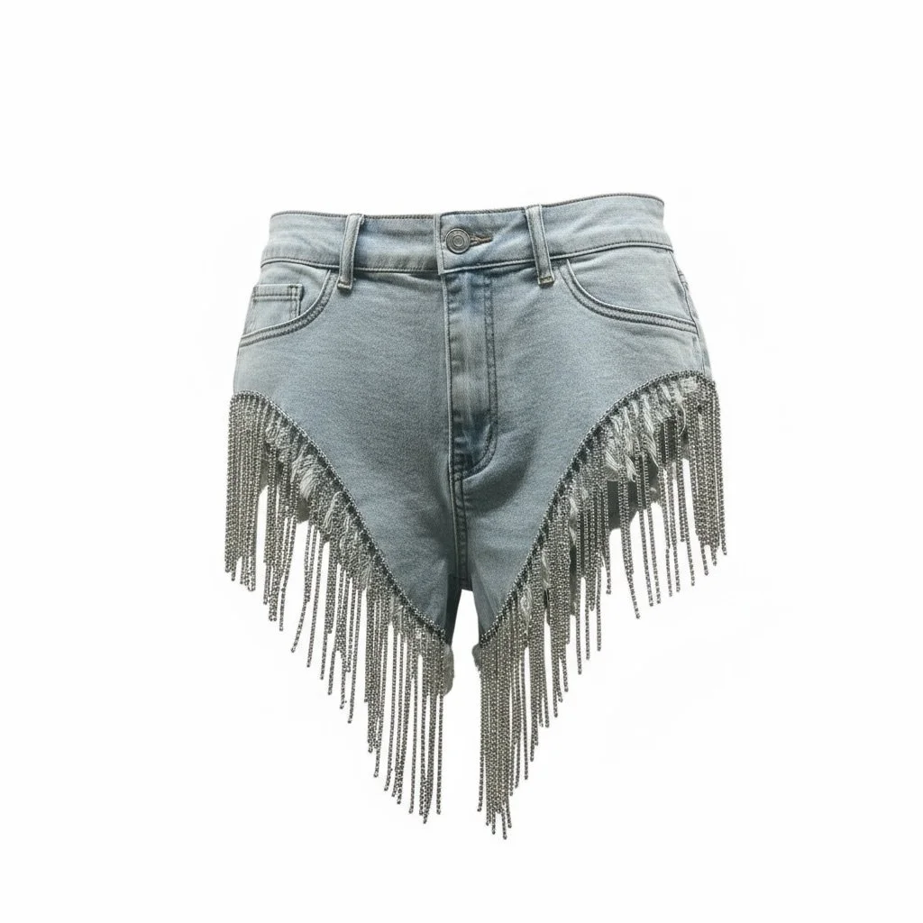 Designed for the bold and the effortless, these shorts feature cascading silver chain fringe that moves with you—catching light and attention in all the right ways. Pair them with a graphic tee and heels for a statement night out, or layer over a bodysuit for that elevated street-chic edge.